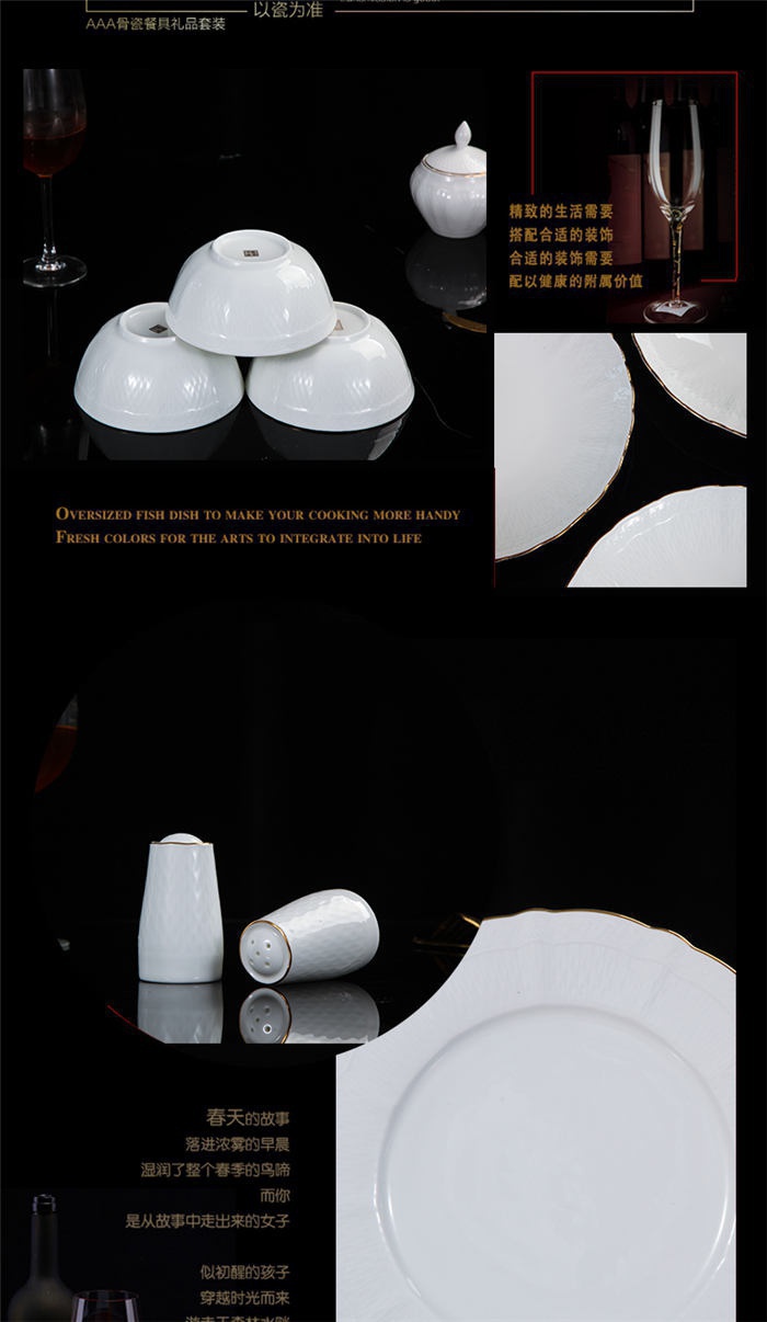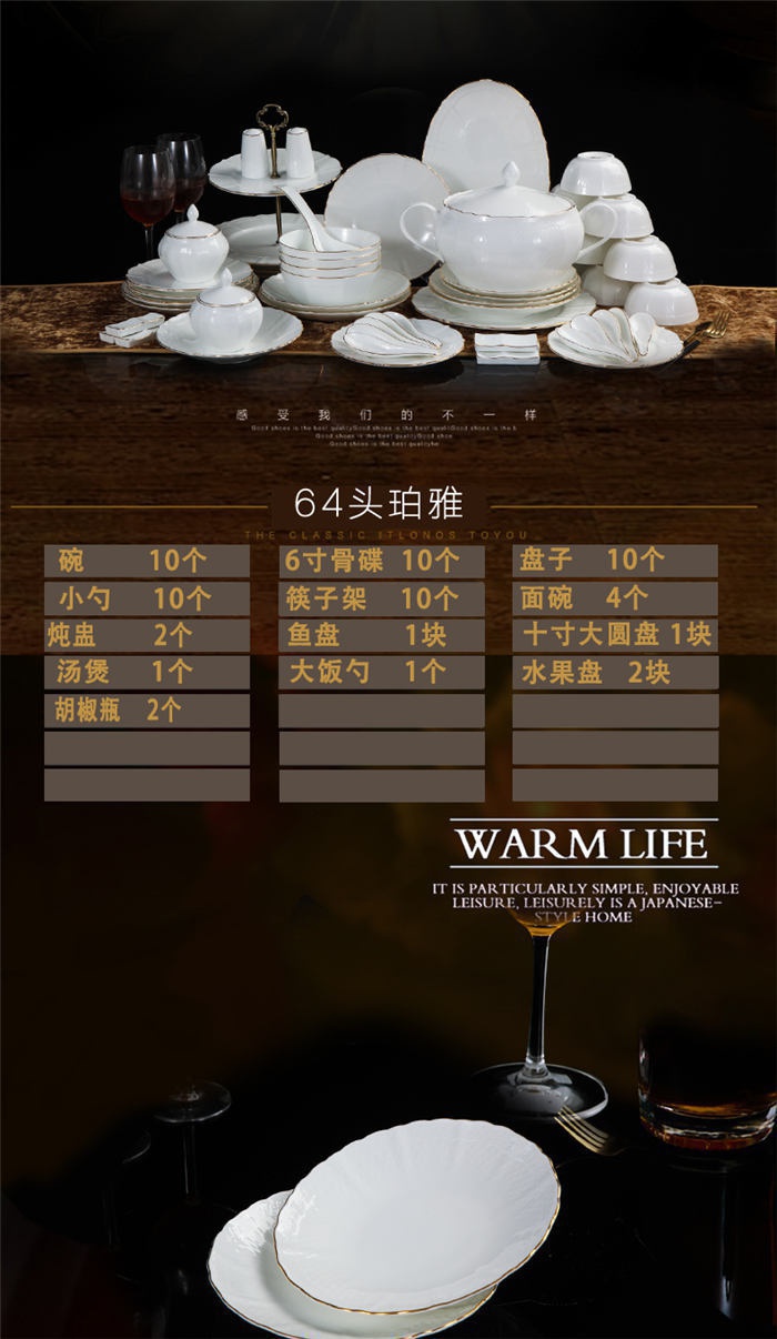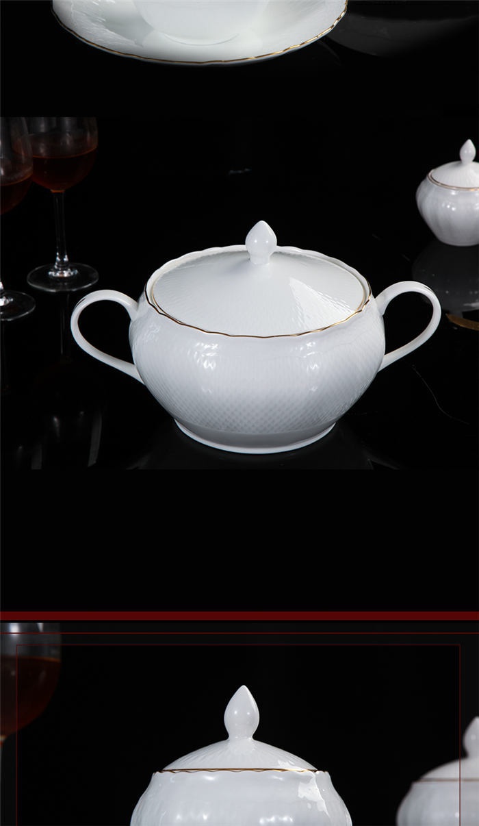 碗十個(gè),6寸骨盤十個(gè),盤子十個(gè),小勺十個(gè),筷子架十個(gè),面碗四個(gè),燉盅二個(gè),魚(yú)盤一塊,十寸大圓盤一塊,湯煲一個(gè),大飯勺一個(gè),果盤二塊,胡椒瓶二個(gè)。